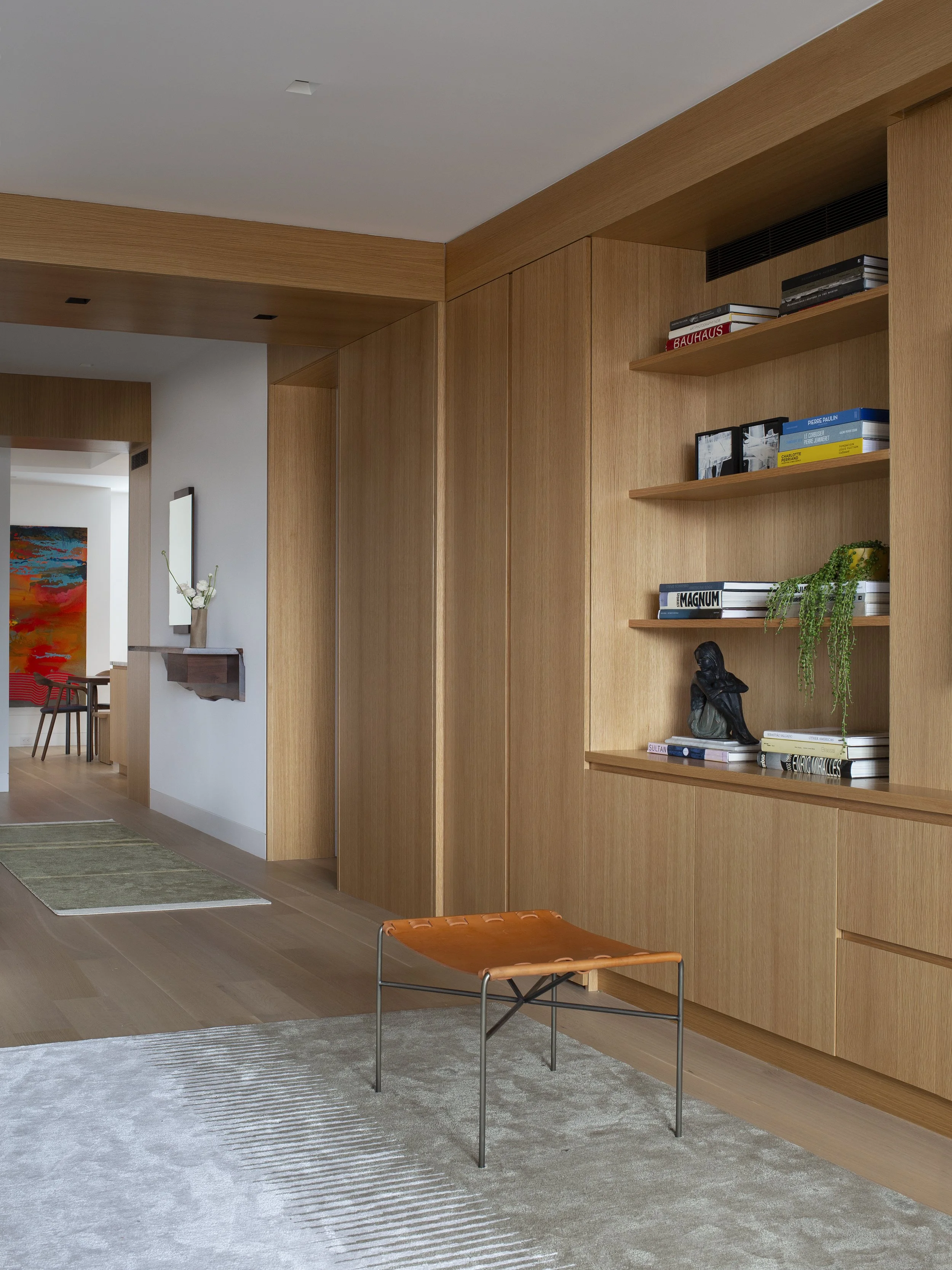 We wove in accent colors very minimally and methodically, while the overall clean, uncluttered design is warmed by beautiful oak floors.